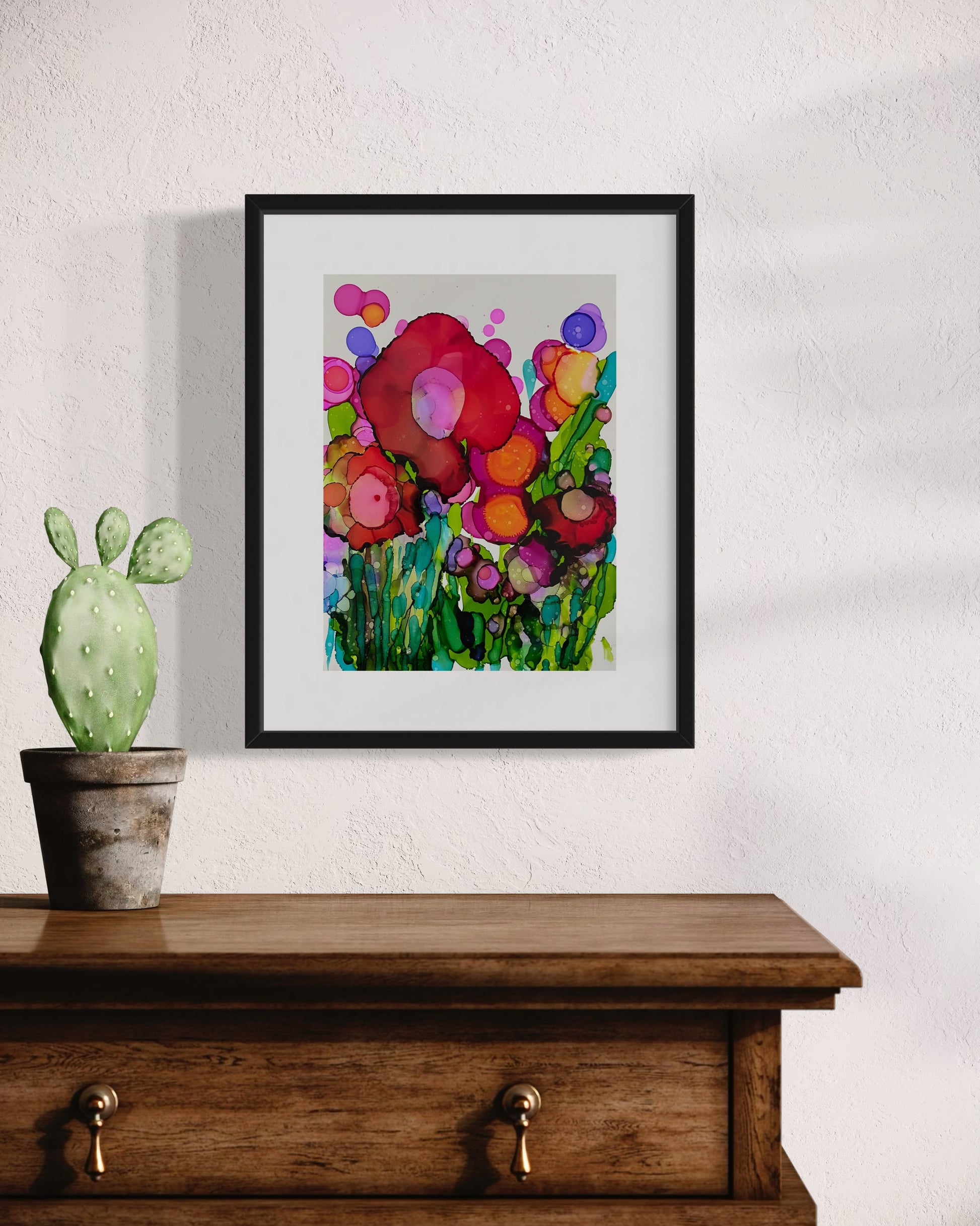 With frame 16X12" black molding, white acid-free mat and tempered glass. Your original work on yupo paper will be protected by the application of an archival quality and anti-UV varnish. It will be installed in the frame and shipped in a sturdy box with postal tracking number. The delivery time is 10 to 14 working days depending on the size of the work.