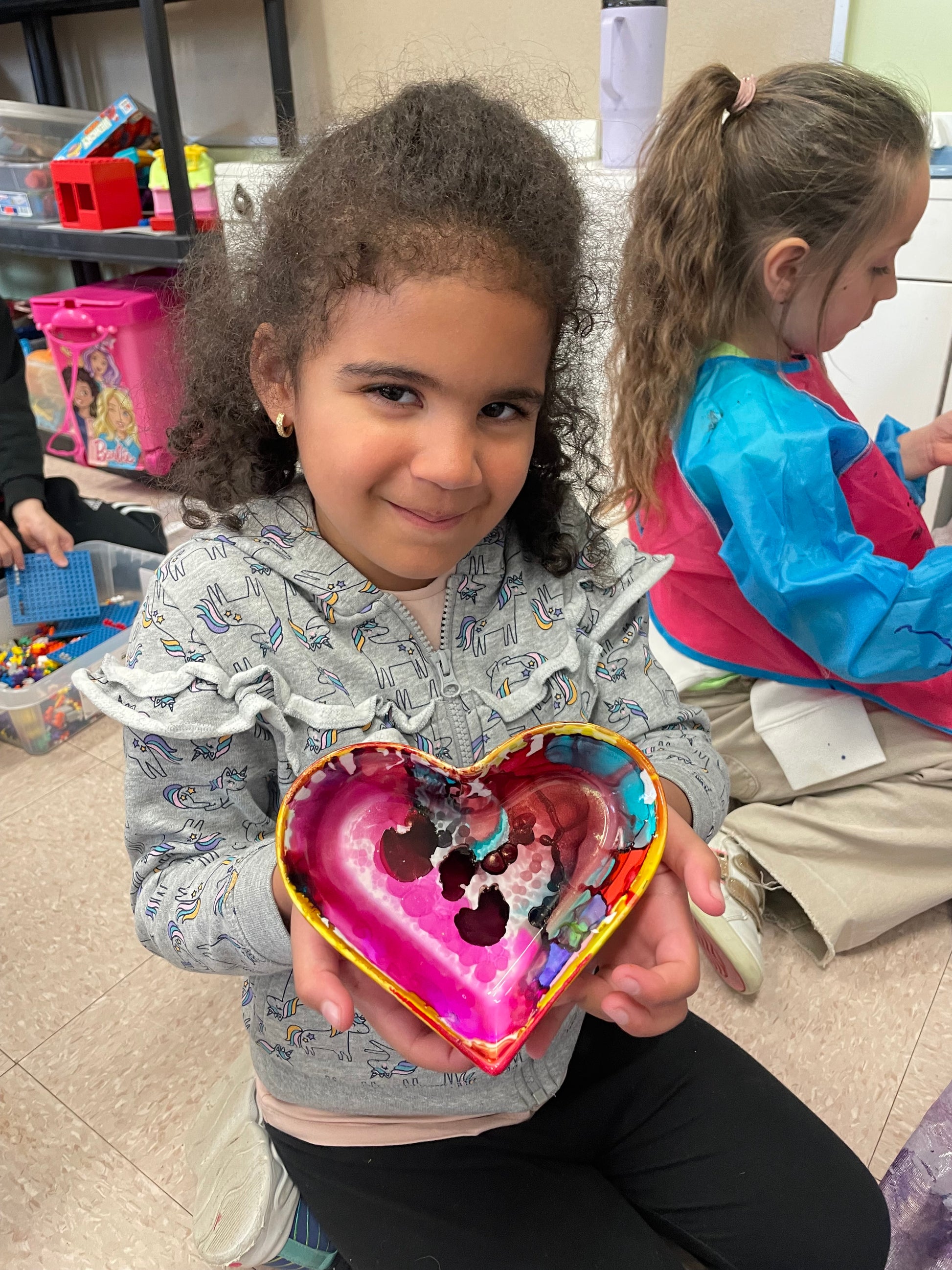 Un atelier tendre et créatif! Les enfants conçoivent une carte de Saint-Valentin lumineuse et originale avec aquarelle, collage, motifs géométriques et détails scintillants.