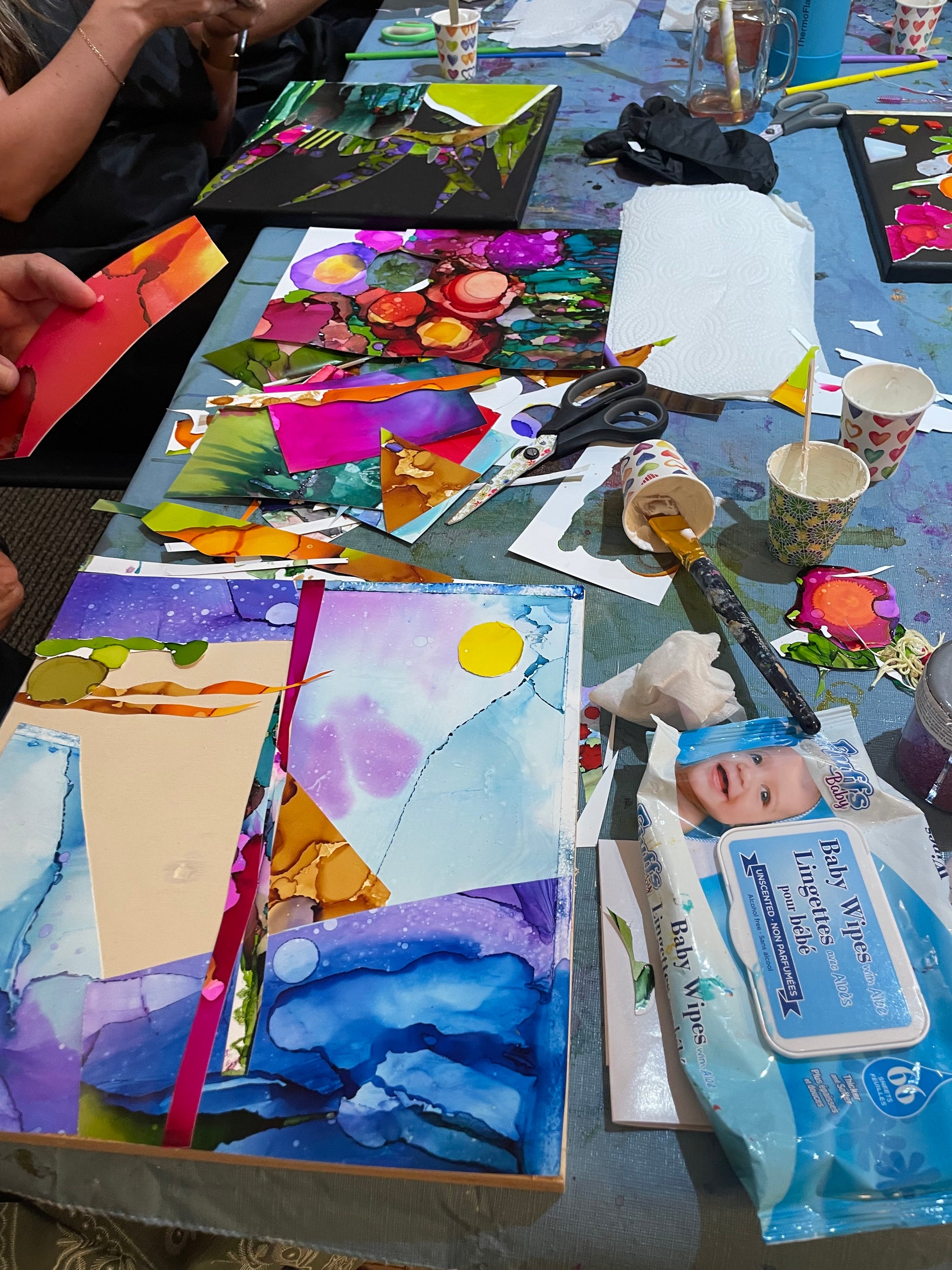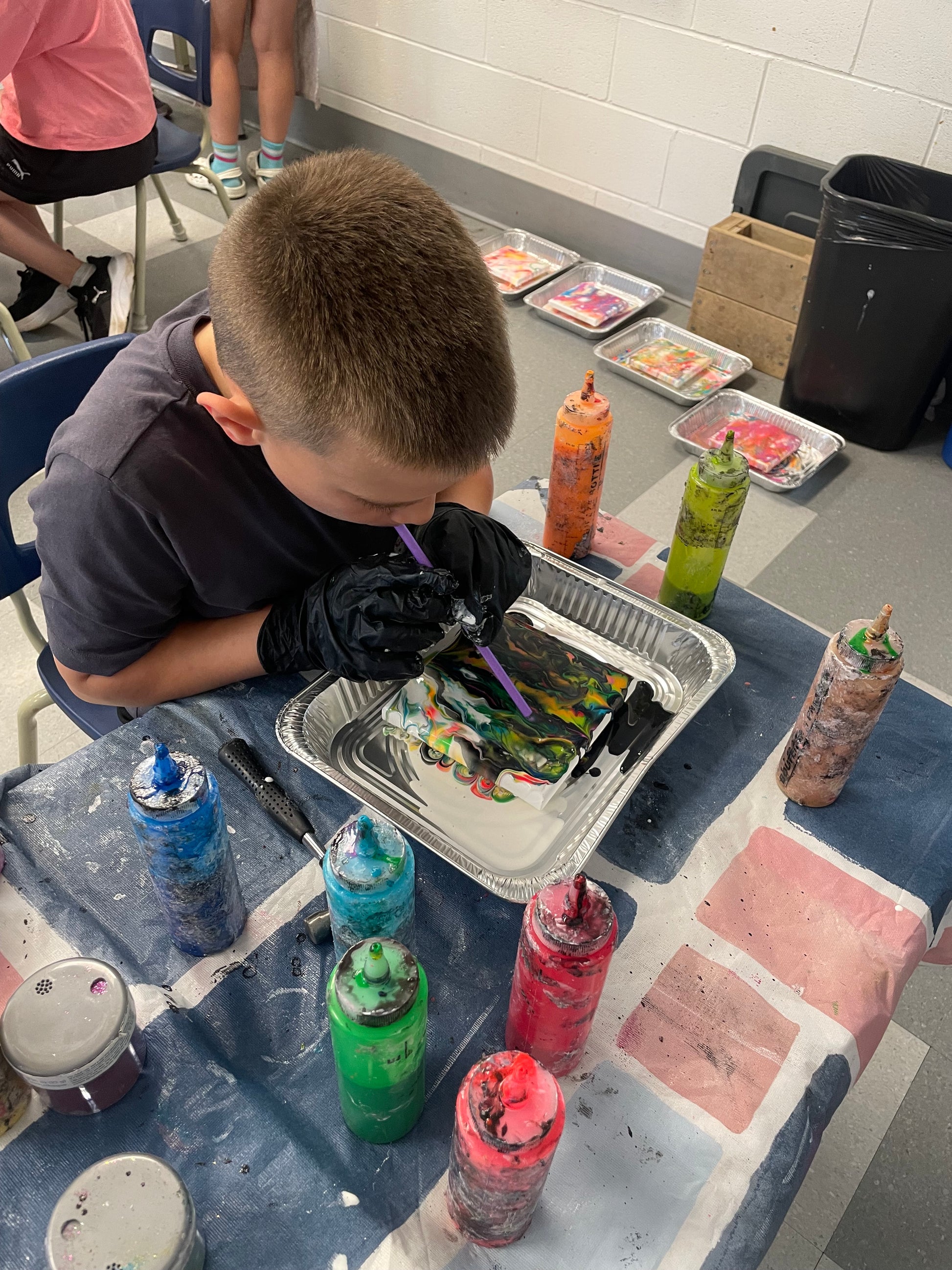 Les enfants s’amusent à verser, étirer et laisser danser la peinture liquide sur la toile pour créer des effets hypnotiques rappelant la glace, le givre et les tourbillons de neige. Une expérience sensorielle magique!