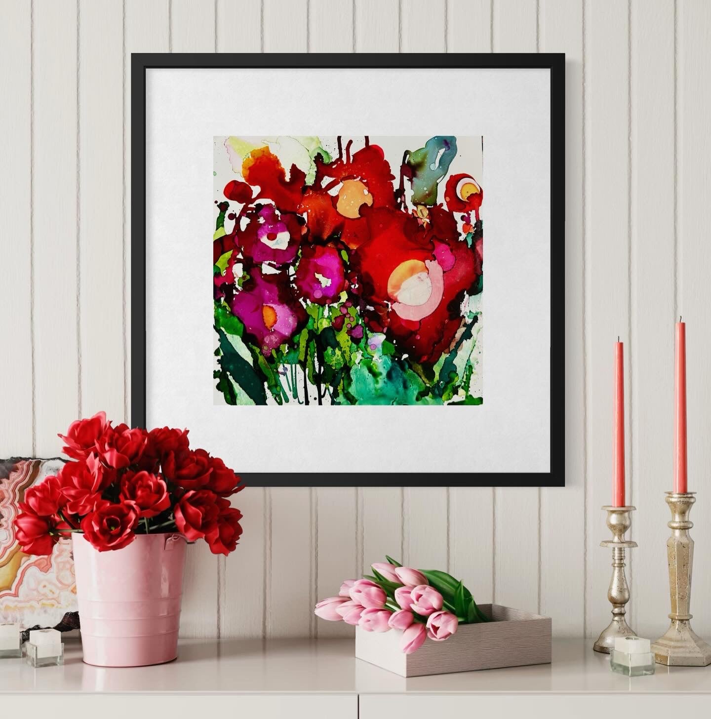 With frame 16X16" black molding, white acid-free mat and tempered glass. Your original work on yupo paper will be protected by the application of an archival quality and anti-UV varnish. It will be installed in the frame and shipped in a sturdy box with postal tracking number. The delivery time is 10 to 14 working days depending on the size of the work.