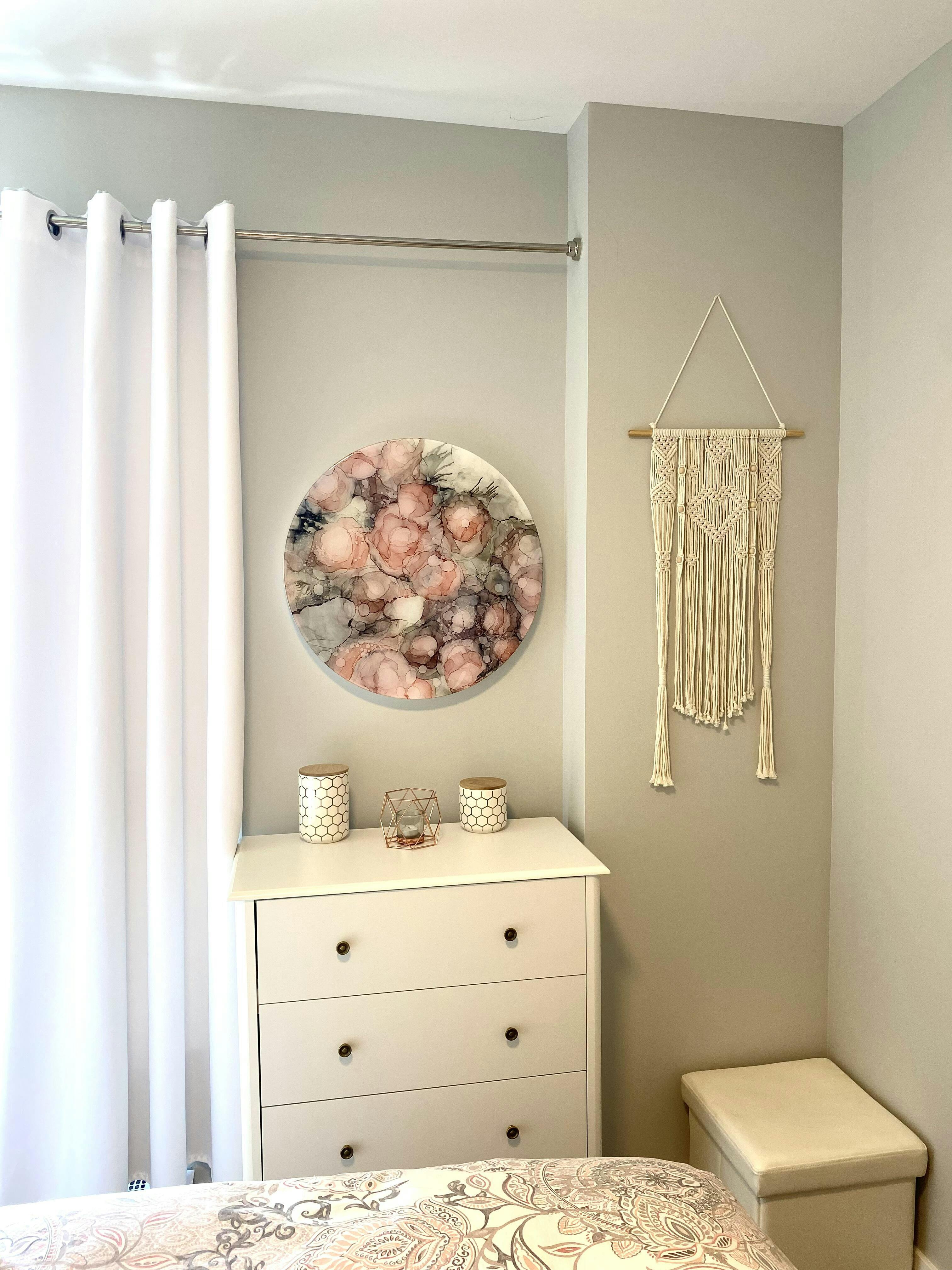 Epoxy resin: Your work is sealed between a 1'' thick pine wood panel and several layers of epoxy resin. Resin is the option that will preserve your work the longest in addition to giving it a glamorous effect. It will bring out all the colors by adding depth thanks to its "crystal" effect. This option includes the pine wood panel, the epoxy resin and the application thereof. The edges of your work will be kept in natural wood. The delivery time is 7 to 10 working days with tracking number.